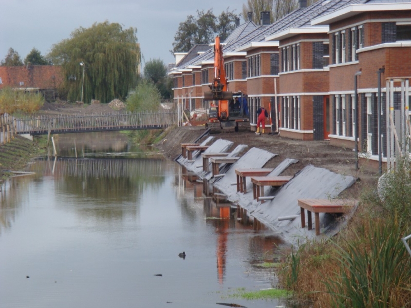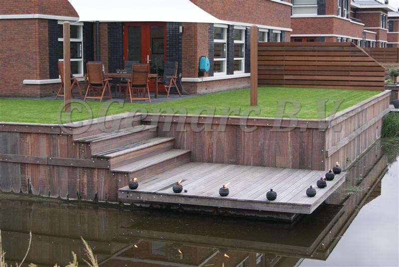In deze wijk in Leidschenveen werden alle huizen opgeleverd met een schuin talud. Om de tuin te vergroten, kozen de bewoners ervoor om een damwand te plaatsen. De al reeds aangelegde vlonders hebben we erin verwerkt en in sommige gevallen vergroot of aangepast.