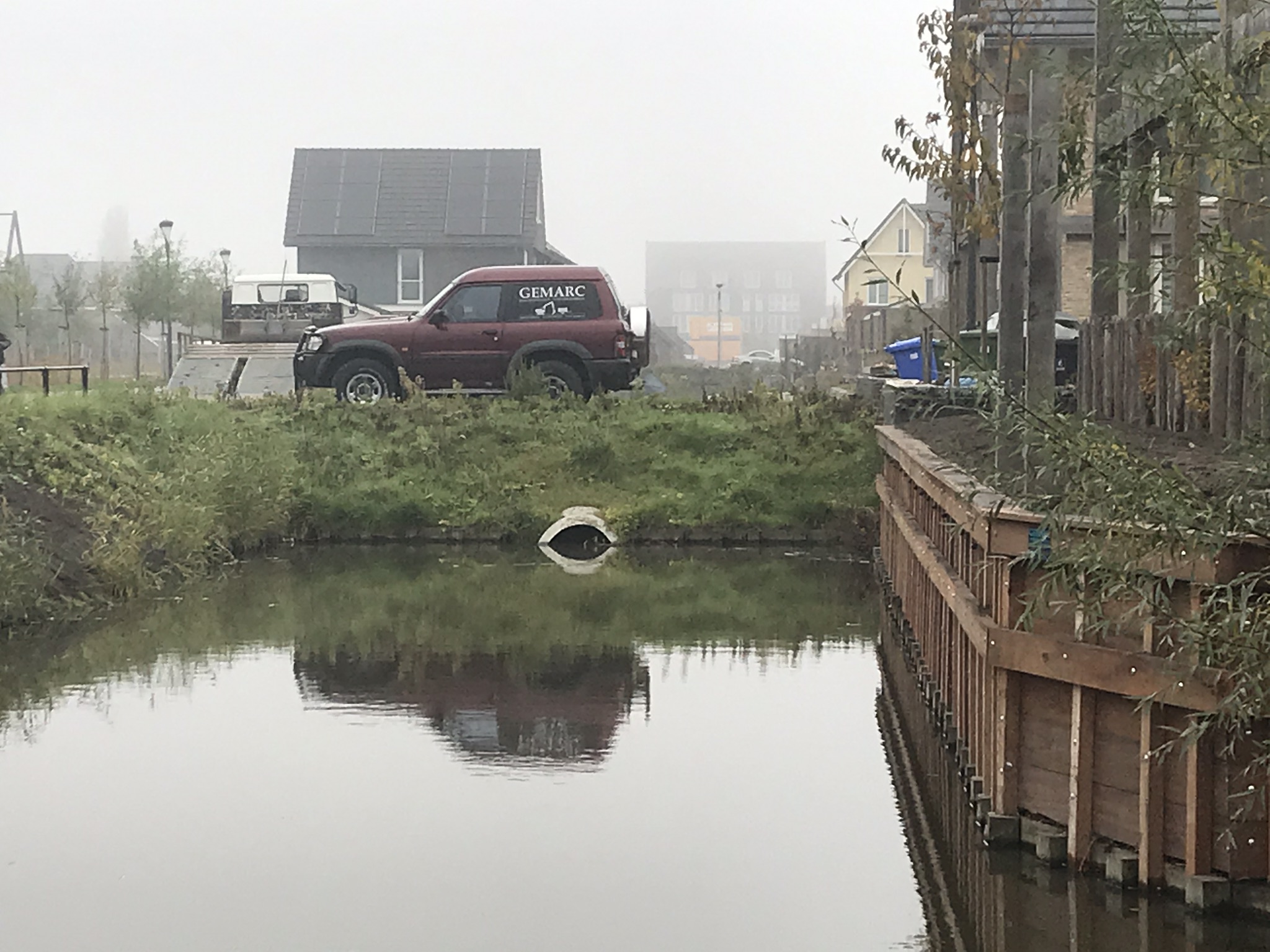 Veel woningen worden opgeleverd met een talud naar het water , waar dan aan de waterkant een lage beschoeiing staat.